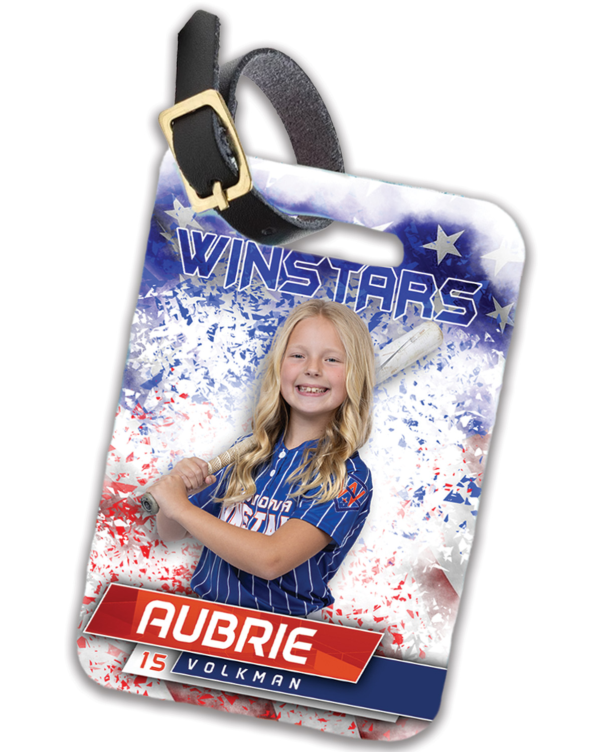 This personalized bag tag featuring the individual athlete is a practical and stylish way to show team pride while keeping belongings easy to identify. Designed with a high-quality image of the athlete, each tag is professionally printed to ensure vibrant color, sharp detail, and a clean, polished look that stands out at a glance. The athlete-focused design turns an everyday accessory into a meaningful keepsake from the season.